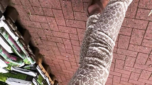 Goddess In Grey Opaque Pantyhose Foot Tease On The Walks