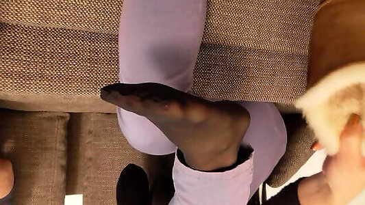 Femdom Footjob Gives Audrey Some Cummy Stockinged Feet