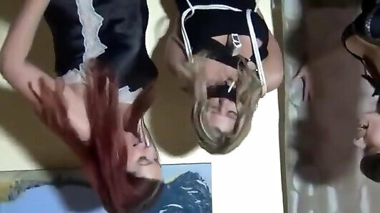 girl-on-girl roped and compelled smoking gag by Dominatrixes