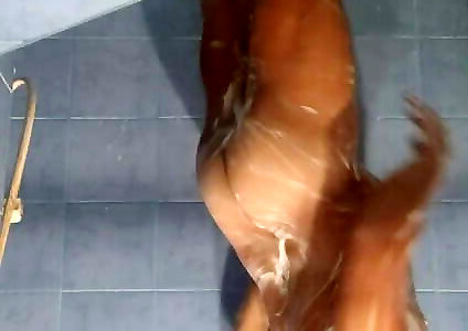 slick chinese fellow cleaning his butt in the douche