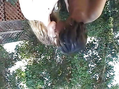 outdoor Boinking Stepmother in public backyard doggie-style with jizz flow on knockers
