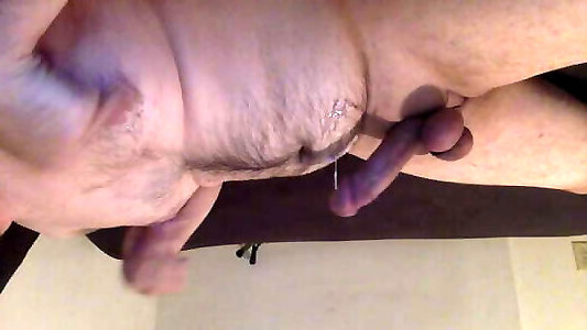 Pre-cum cascading from very rock hard fuck-stick while tugging and cumming
