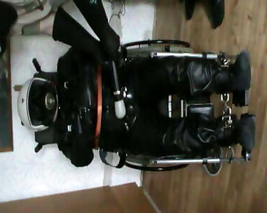 Straitjacketed sub in the wheelchair