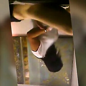 Hot girl with big natural tits gets fucked hard by a big cock on the balcony - Vertical Amateur