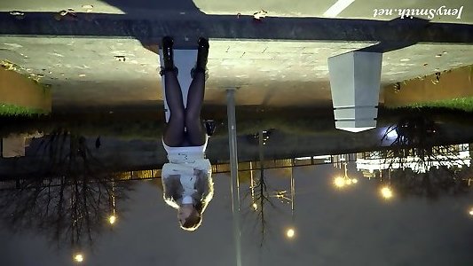Deep Evening - Russian Jeny Smith walks in public in see-through stocking without undies.