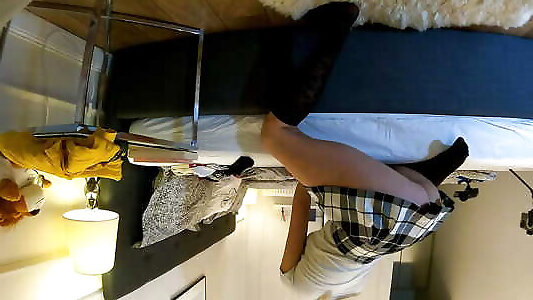 My Amazingly Hot Petite Girlfriend came to visit me to try on Miniskirt and Stockings No Panties