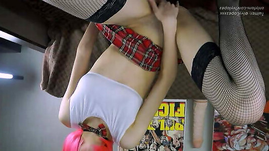 Butch sapphic humps her two vags