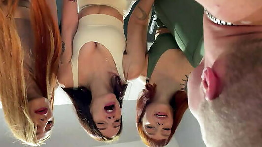 Gang Sole Adore Female Dom - One Gimp Obeys The Naked Soles Of Trio Dommes