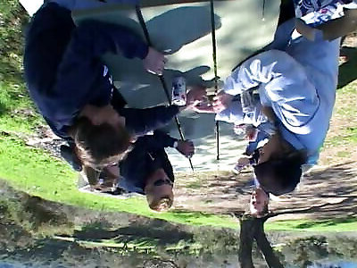 Asian gets her coochie screwed doggie-style and gargles on other boy&039;s ample rod