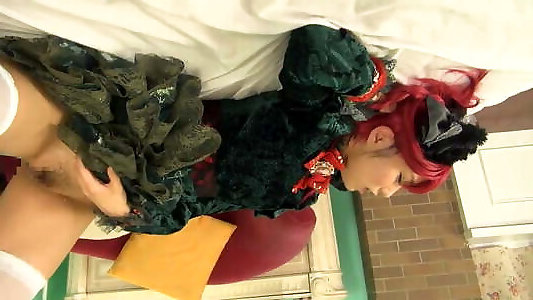 Japanese costume play! Chinese biotch wedges toy in her unshaved coochie and flashes her destroyed butt! Bum plow! Coochie, raw poon