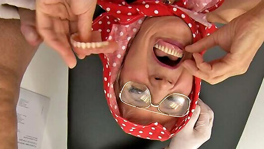 Toothless grandma 70 takes out her dentures before sex