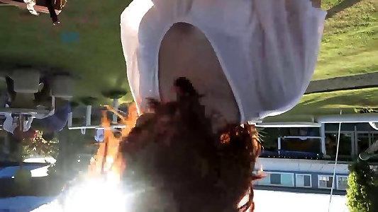 Hawaii chick at sunny pool makes mischievous sex