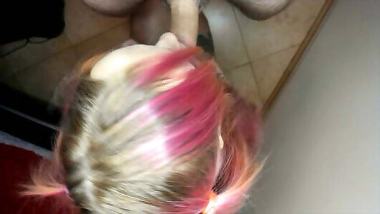 Stunning torrid and uber-sexy female fellating man meat. Cum in jaws in Pov