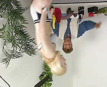 Pale girl with nice tits doing anal squat fuck challenge