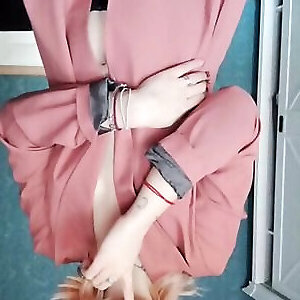 Light-haired Undressing in Pvc Wench Uniform and high high-heeled slippers
