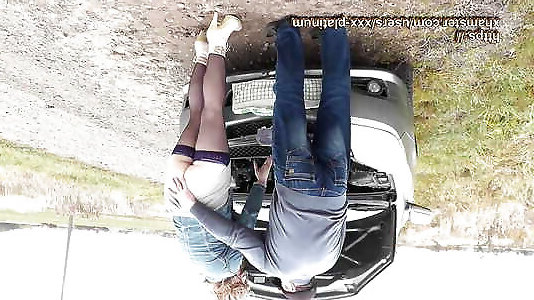 Fixing up a redhead lesbian girl in a car service by a blondie handywoman