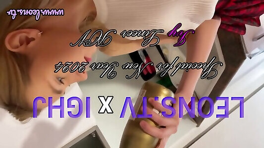 Mutual Masturbation with Hot New Blonde Horny Wife Ends up Cumming on Her New Years Eve Red Dress