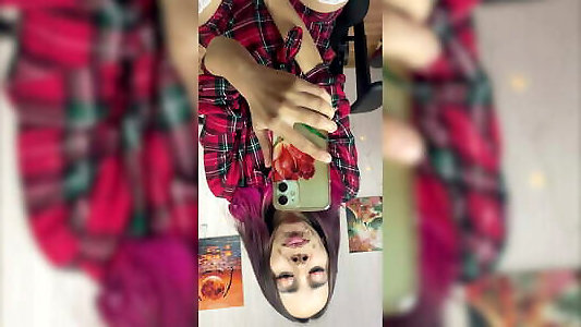 Horny student with a juicy ass masturbates her wet pussy to orgasm in close-up. DP
