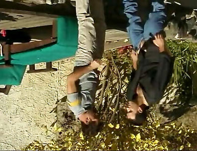 Crazy man plows his homo playmate outdoors