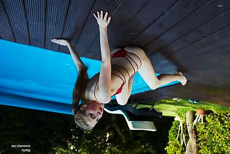 Outdoors solo getting off tweak with swimsuit clad first-timer cowgirl