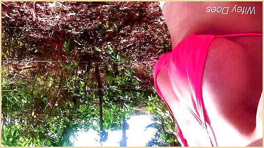 Wifey is braless in this tight pink shirt with her perfect tits flashed
