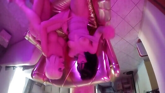 Scissoring Lezzies Cougar Tempts Teenage Latex Mitten Mutual Getting Off
