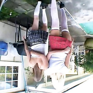 18yo Cheerleader Teenage slurp poons while queening. Girl-on-girl Girly Lovemaking Outdoors in the Garden