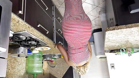 I like to see my beautiful milf sexy caretaker cleaning the kitchen and when she bends over she exposes her huge ass what a beau