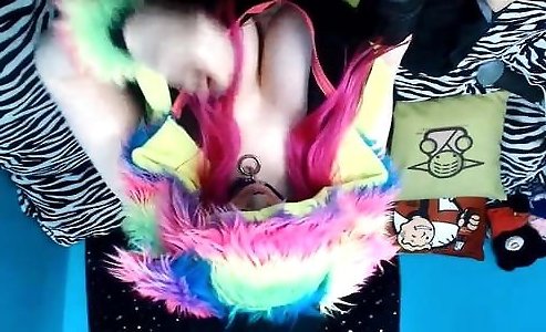 Web Cam chick with fat, sunburn lined breasts flexing
