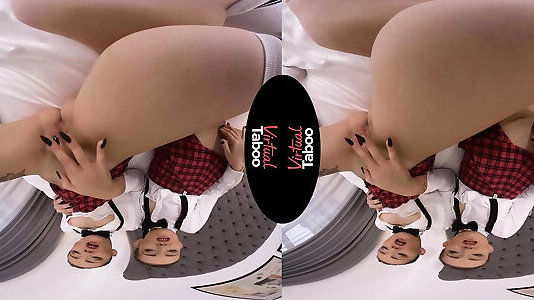 A black-haired teenager stepsis licked and nailed by twin stepbros