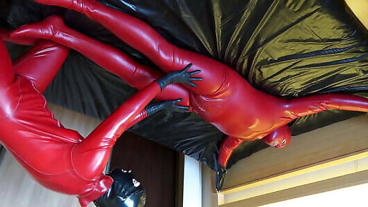 OnlyFans teaser - Latex catsuit with built-in vaginal and anal condoms!