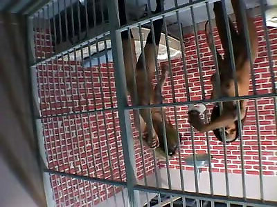 Skinny Black Inmate Screws Naughty Crimson Head Jail Guard