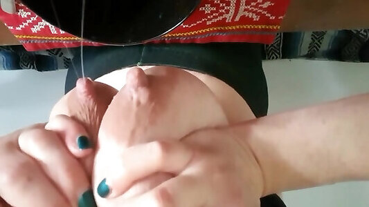 BBW big boobed wife masturbate her hairy pussy while her boobs are lactating hard! - Milky Mari