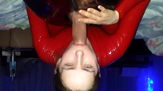 Large Strap-on Gapes Gigi in Latex Catsuit