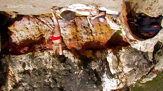 Big booty Latina takes a walk on a beach and sucks a massive dick
