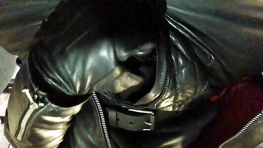 Leather Tormentor instructs to sniff and wank off as he dresses PREVIEW