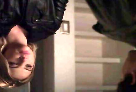 Leather Dominatrix drills victim. Belt Dick and smoke