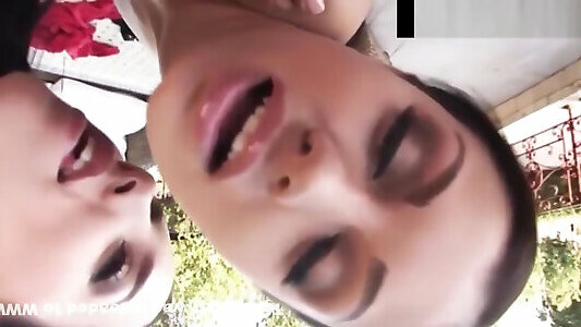 Double Lesbian Domination - watches his wife swallow Play and Ass Worship with Subby Schoolgirl