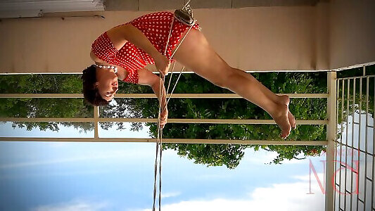 Depraved housewife swinging without panties on a swing c1