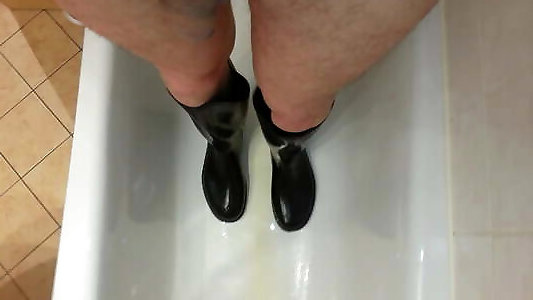 Bepisste Gummistiefel anziehen
