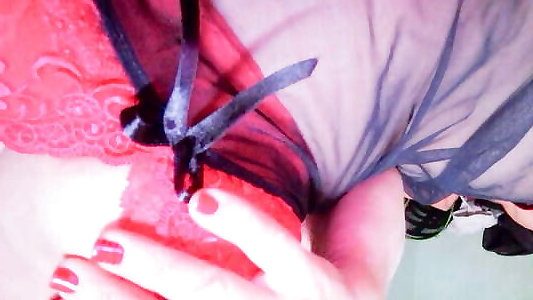 Hj seducing sons gg In Lingerie Closeup Wanks Cock