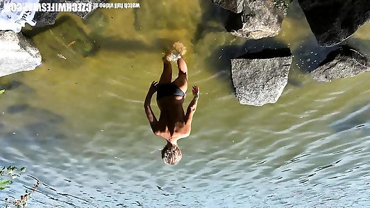 Huge-boobed Milf Elysa Fingerblasting Her Labia Outside In Her Backyard