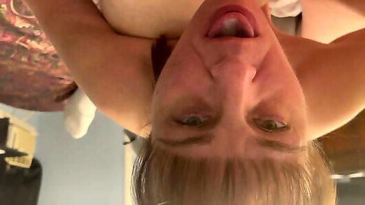 Mature with saggy boobies deep throating in Pov and swallowing jizm