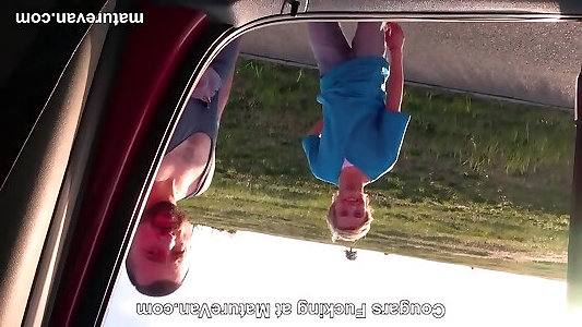 Fat Cougar Eager for Fresh Cock in a Van - tied enf