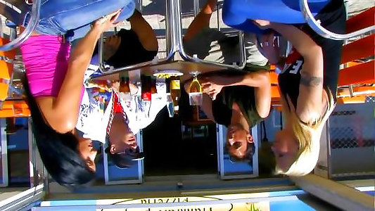 Lucky guy fucks two brunette bombshells and cums on their faces in a pub
