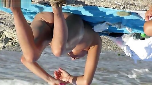 Nasty Naturist Cougar Stretching poon at the beach Hidden Cam Hidden Cam