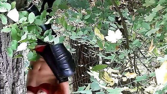 Outdoors – ginger-haired dominatrix Playing in the woods