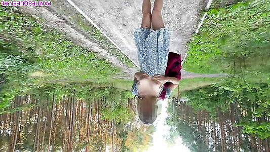 Public dare - stepsister walks around naked outdoors in park and plays with remote control vibrator in her pussy
