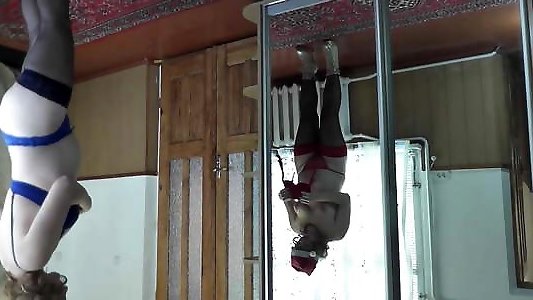Nude Milf strokes honeypot with sista who lives in mirror