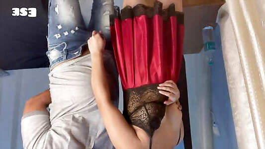 An fancy damsel employee in crimson undergarments unclothes in the office. Underpants and sumptuous harness. Depraved breezy flashes hooters 5